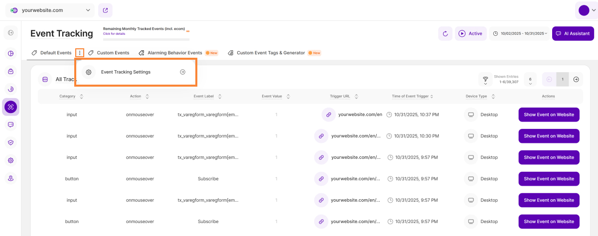 For a comprehensive guide, please refer to this support article: Event Tracking Settings.
