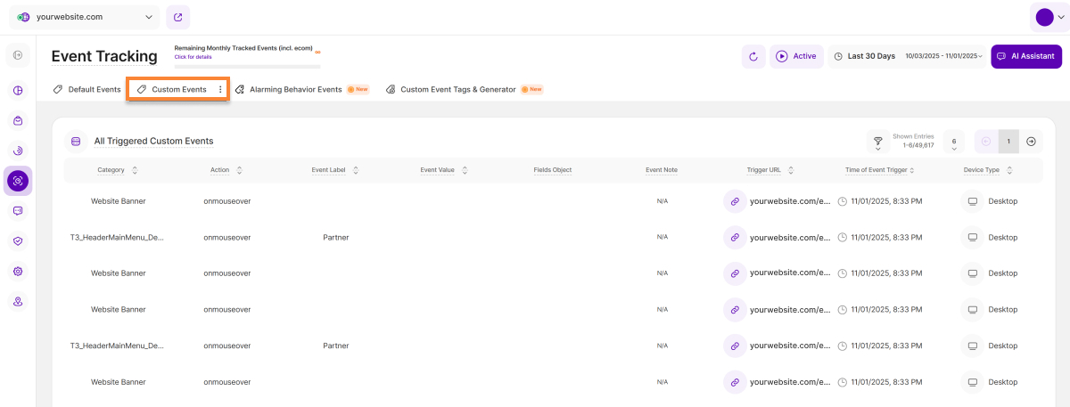 - Time of Event Trigger: This column shows the precise date and time each event was triggered on your website.