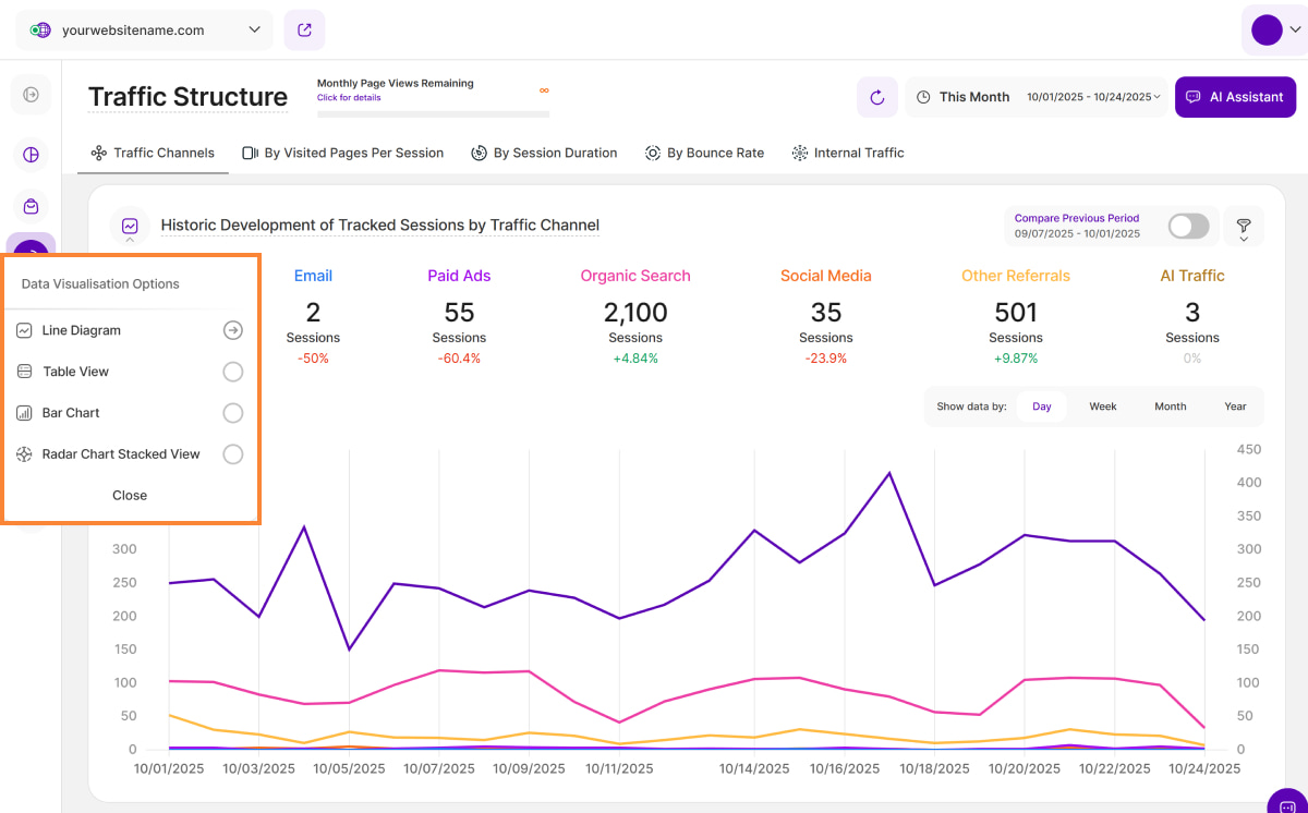 Whether you prefer bar charts, line graphs, or other formats, you can now visualize your traffic data in a way that clicks for you. This makes it easier to grasp trends and patterns, ultimately leading to better decisions.