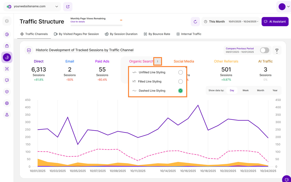 Want to tailor the way your data is visualized? Click the three-dot icon next to each KPI to unlock the following line styling options: