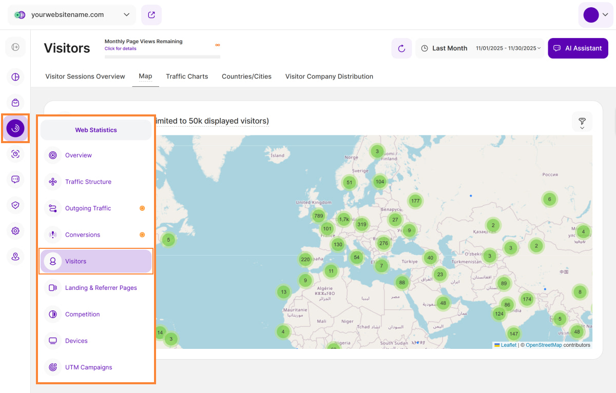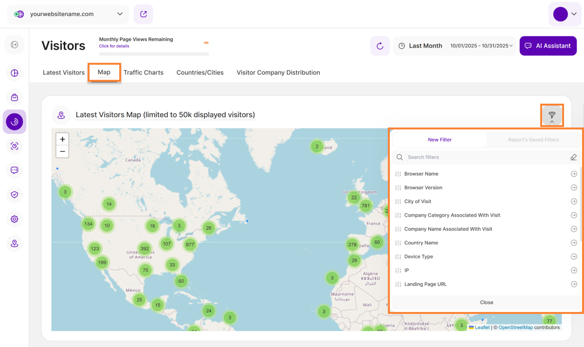 The Latest Visitors Map now offers multiple filter options that you can use individually or in combination to refine data and focus your analysis on specific geographic regions.