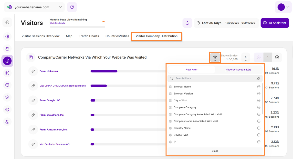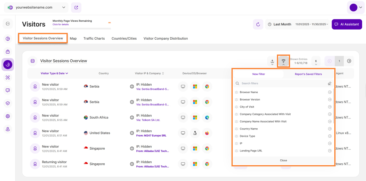 - Filter Icon: Allows you to apply various filters for a more focused analysis of visitor data.